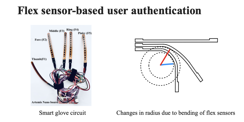 work involving devising novel biometrics authentication mechanisms involving smartgloves with flex sensors