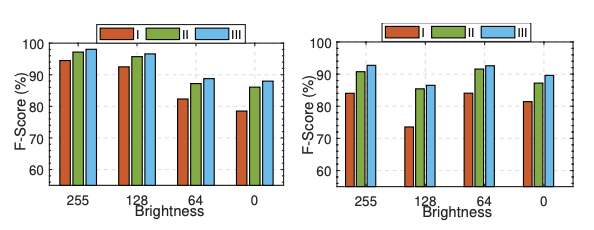 - Attack effectiveness degrades at low brightness and across mismatched device models, indicating that inference relies on a combination of content structure and hardware characteristics, not a universal leakage channel.
